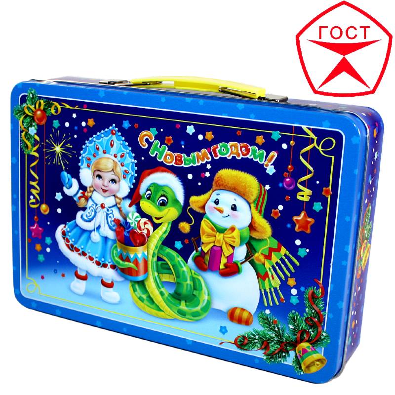 Сладкий подарок на Новый Год в жестяной упаковке весом 600 грамм